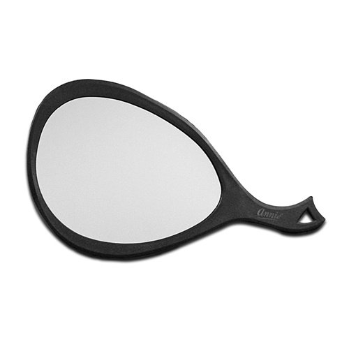 Teardrop-shaped hand mirror perfect for applying makeup. Black.