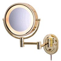 With a bright brass finish, this mirror is a reflection of your sense of style and beauty! The finish on this luxury mirror glows with a soft shimmer and illuminates for a dynamic point of view. The halo style lighting emits glare-free, natural-looking light. From far away it looks like a spotlight with a streamlined nautical style. This product extends up-to 14-inches from its wall mount and is 8-inches in diameter. The brass finish protects against dust and particles and meshes a rustic charm with city living. This mirror has two reflective sides that swivel for a regular or a 5x magnification mirror. This product glides with the touch of a finger, but is firm enough to hold its place for odd angles. This product comes complete with mounting hardware and is easy to install. Jerdon provides a 1-year, limited warranty that protects against any defects due to faulty material or workmanship. Jerdon Style has earned a reputation for excellence in the beauty industry with its broad range of quality cosmetic mirrors (including vanity, lighted and wall mount mirrors), hair dryers and other styling appliances. Since 1977, the Jerdon brand has been a leading provider to the finest hotels, resorts, cruise ships and spas worldwide. Jerdon continues to evolve with and shape how stylists envision beauty and fashion.