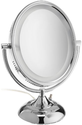 This chrome finished mirror stands upright on countertops, vanities and tables and is perfect for the bathroom. This mirror withstands dampness and humidity and has an 8-inch x 10-inch oval design with 10x magnification. This product has two reflective sides that swivel 360-degrees for a regular mirror or a 10x magnification mirror. This product glides with the touch of a finger, but is firm enough to hold its place for peculiar angles. The Jerdon HL958C Table Top Lighted Mirror is 14-inches (H) and adjusts to all angles for a dynamic point of view. Jerdon provides a 1-year, limited warranty that protects against any defects due to faulty material or workmanship. Jerdon Style has earned a reputation for excellence in the beauty industry with its broad range of quality cosmetic mirrors (including vanity, lighted and wall mount mirrors), hair dryers and other styling appliances. Since 1977, the Jerdon brand has been a leading provider to the finest hotels, resorts, cruise ships and spas worldwide. Jerdon continues to evolve with and shape how stylists envision beauty and fashion.